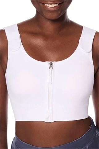 ➡️ Delikatny rzep z tyłu biustonosza pozwala bezpiecznie przymocować pas kompresyjny.