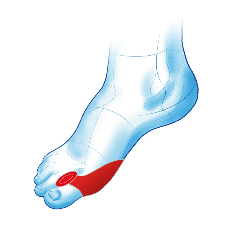 Klin koryguje do prawidłowego ułożenia palucha i separuje go od drugiego palca stopy. Zakładany osłoną od zewnętrznej strony palucha, dodatkowo zabezpieczając go przed otarciami
