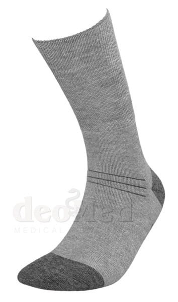 Skarpetki te są bezuciskowe dzięki specjalnej konstrukcji i dodatkowi elastycznych włókien. Dobrze przylegają do stóp i nóg, ale jednocześnie nie tamują przepływu krwi i nie powodują otarć. Z tego względu skarpetki wełniane DEOMED Medic Deo Silverwool mogą być stosowane przez osoby chorujące na cukrzycę, zaburzenia krążenia w nogach czy mające obrzęki stóp i nóg